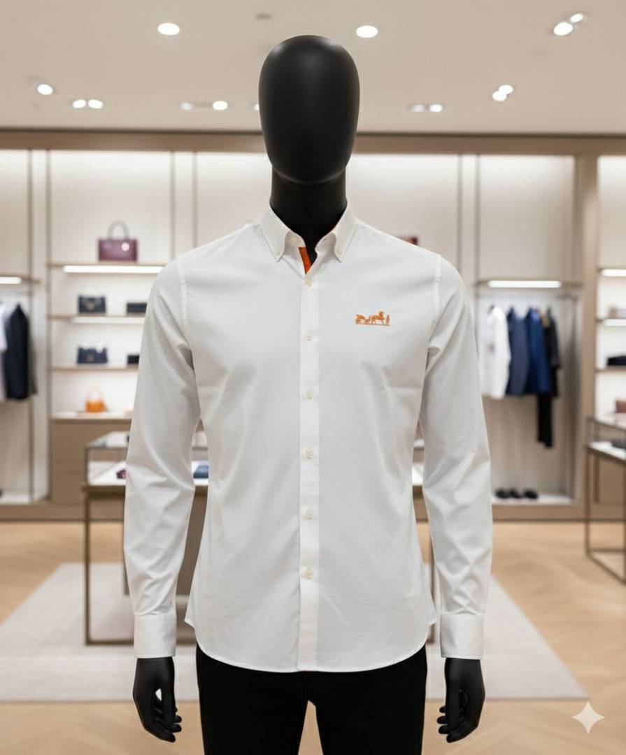 • Hermes Chest Logo Full Sleeves Shirt White