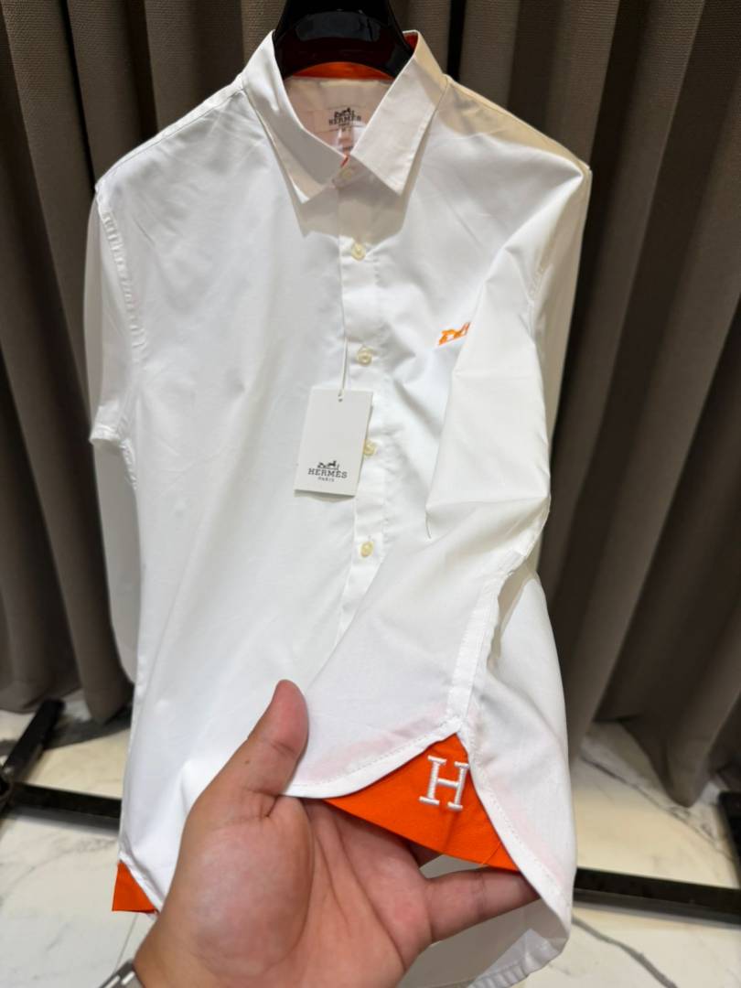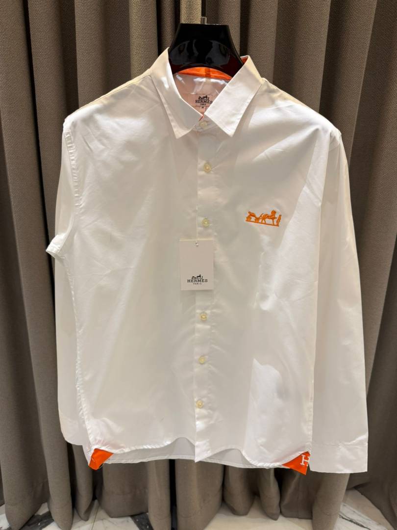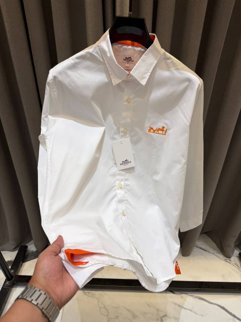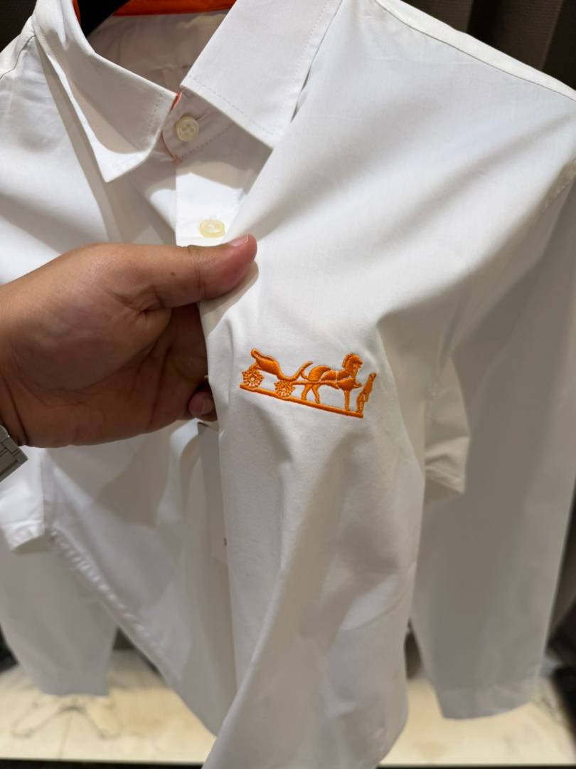 Hermes Chest Logo Full Sleeves Shirt White