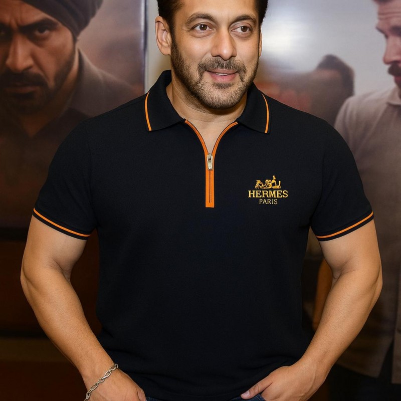 Hermes Paris BLACK 100% IMPORTED COTTON LYCRA FABRIC FRONT LOGO CURRENT STORE ARTICLE VERY PREMIUM ZIP POLO T-SHIRT 146